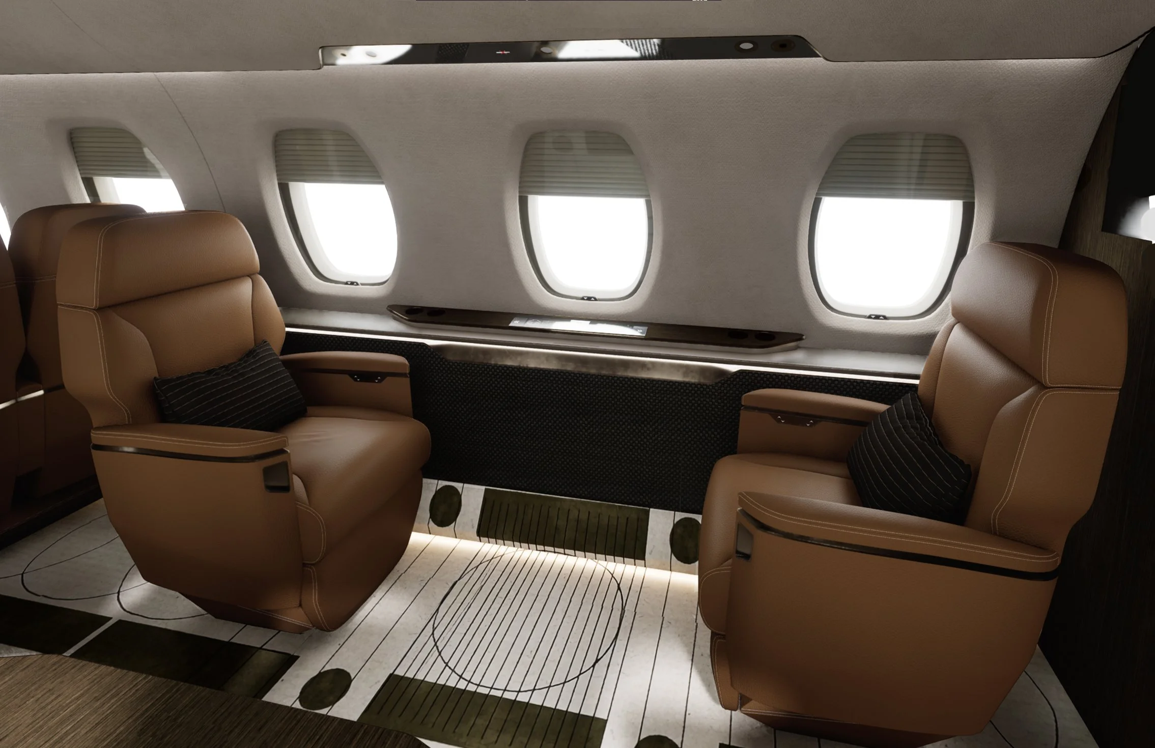 Rather than a green aircraft completion, our submission concept focuses on impactful, sophisticated, and expedited interior upgrades.